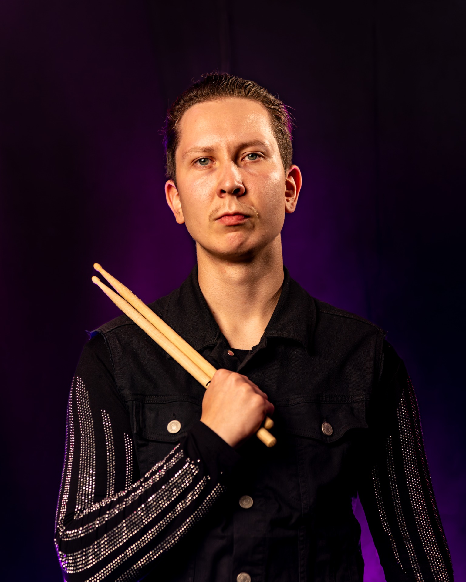 I've always enjoyed rock and metal. My taste in music was influenced early on by what the rest of my family listened to. The biggest inspirations in my musical life have been bands like AC/DC and Iron Maiden. Later on, I also started listening to bands like Slipknot, Stam1na, Ghost, and others. Some of the biggest influences on my drumming have been Phil Rudd, Nicko McBrain, Jay Weinberg, and so on.